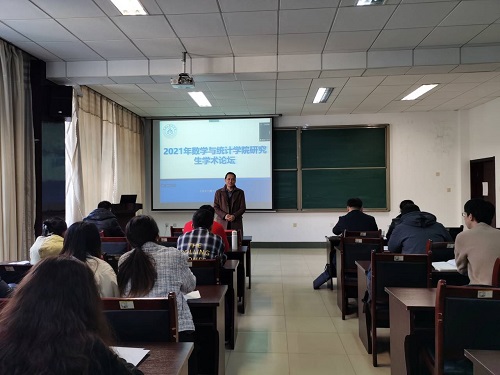 随后,研究生工作部张少全副部长讲话。他首先祝贺数学与统计学院研究生学术论坛顺利召开,回顾了学校研究生教育的发展历史,强调研究生是学校科学研究的重要力量,为学校高质量内涵式发展做出重要贡献。他也期望研究生和校友能继续为学院的发展贡献力量。