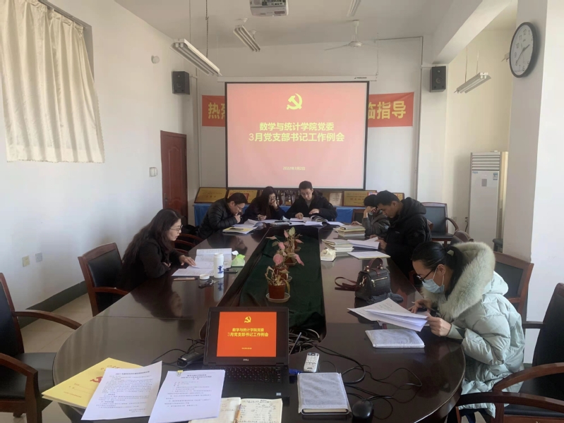 3月2日,数学与统计学院在414会议室召开3月党支部书记工作例会,对3月党支部的各项重点工作进行安排部署。会议由党委书记王玉冰主持,各教工党支部与学生党支部书记参加此次会议。