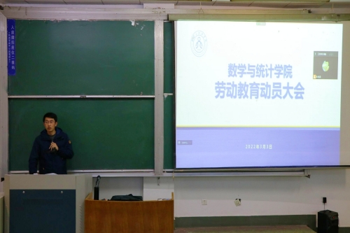 为全面贯彻落实新时代对劳动教育的要求,充分发挥劳动综合育人功能,构建德智体美劳全面发展的人才培养体系,3月3日下午,数学与统计学院召开劳动教育动员大会,大会以线上线下相结合方式进行。线下在15号教学楼102教室进行,各班工作小组组长参加,其他同学通过腾讯会议形式参加,此次会议由学院团委书记、学工办主任杨晨主持,2021级辅导员王凤璐、刘博文以及全体学生参加。