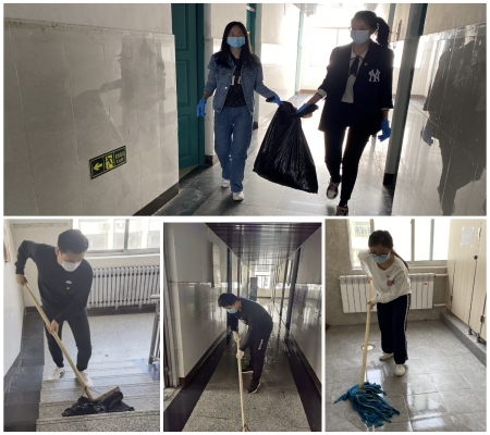 因疫情原因,校园暂时封闭,负责学院公寓卫生的阿姨无法入校,学生党员王荣看到公寓楼公共区域卫生较以往有较大差距,主动询问公寓内值班的阿姨有关情况,在得知是因为打扫卫生的阿姨无法到校时,主动与党支部书记王凤璐老师联系,说明公寓内的有关情况,表示要承担公寓楼内公共区域卫生的清扫任务,学院在原有党员志愿服务队的基础上分设公寓党员志愿服务队,由45名学生党员在17、18号学生公寓分组分楼层安排值日表,每日早晚分两次对公共区域卫生,特别是楼道、走廊以及公共卫生间进行集中清理打扫,确保公寓整体环境的干净与舒心。一声号召,一句句“我可以”“让我来”的回应,正是这支党员志愿服务队最有力的回音。