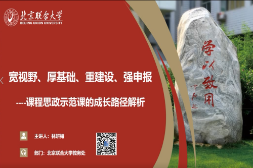 3月22日下午2点在腾讯会议,我院组织教师听取了由南开大学组织的京津冀数学课程思政虚拟实验室系列报告,主讲人为北京联合大学教务处副处长林妍梅教授,报告题目为《宽视野、厚基础、重建设、强申报----课程思政示范课的成长路径解析》。此次报告会采取线上方式进行,学院课程思政培育群的老师们听取了此次报告。