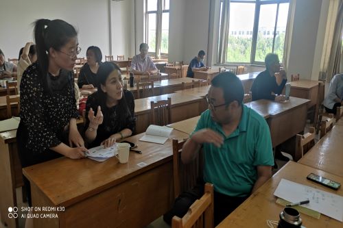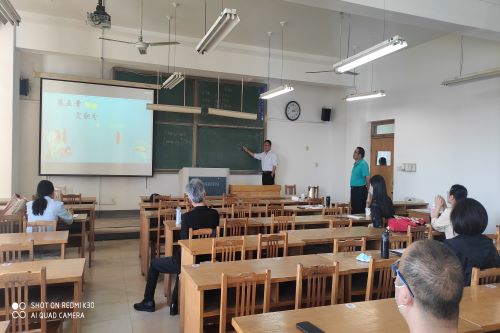 教研室刘宣江、徐峰、付夕联、范红玲、张艳平老师参加活动,从课程整体设计,内容讲授表达、课程思政切入点等方面,与参赛老师进行交流。省青教赛一等奖获得者郑滨老师从比赛的角度对参赛老师进行点评。