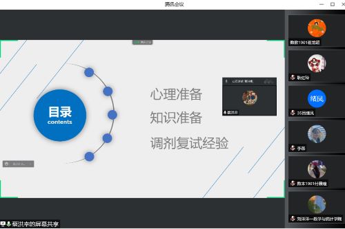 王洪彬老师首先简单介绍了三位优秀校友的情况,然后由三位校友分别就教师编考试与考研心理知识面试准备等内容做了精彩的报告。陈赛回顾了在校期间参加山东省师范生从业技能大赛的情况,详细介绍了说课与讲课的区别,并鼓励学弟学妹们有机会一定要参加技能大赛;对于教师编考试的准备,她从笔试和面试两方面做了详细的介绍和经验的分享。孙蔼韦和蔡洪幸则分别从知识准备、心理准备、复试准备以及如何调剂等方面从不同角度谈了二战考研复习的经验和体会,孙蔼韦强调了疫情期间复习考研需要注意哪些问题,蔡洪幸强调了选择好第一志愿所报学校的重要性。报告结束后,三位校友同与会学生开展了交流,对于学弟学妹们提出的问题,三位校友进行了耐心细致的回答,并表示乐于与学弟学妹们分享自己考编、考研的资料。最后,数学系主任孙文华老师做了总结发言。