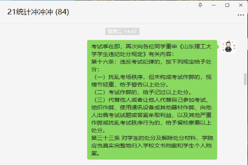 考风考纪是推进学院学风建设工作的关键环节,是体现学院优良学风的重要指标。全国大学英语四、六级考试和本学期期末临近,为进一步加强学院学风建设,严肃考风考纪,坚决杜绝考试违规违纪行为,营造公平竞争、诚信考试的校园环境,数学与统计学院于5月24日-31日组织开展了考风考纪主题教育活动。