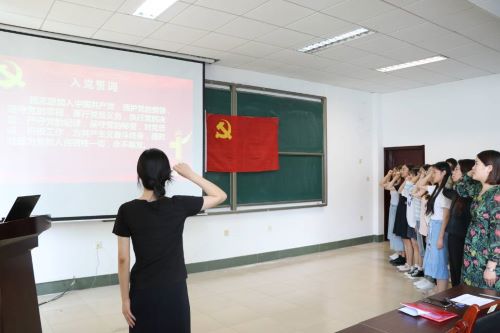 各学生党支部结合2022年上半年发展党员有关程序要求,组织全体毕业生党员,面对党旗再次庄严宣誓,学院党委书记王玉冰同志参加宣誓仪式,并勉励新党员要努力奋斗,牢记入党时的铮铮誓言,让入党誓词成为未来之路的领航明灯,让党员身份在担当奉献中熠熠生辉。