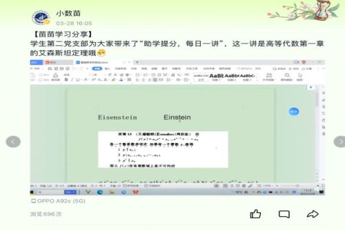 各学生党支部依托党建创新项目,切实发挥党建引领作用。学生第一党支部结合专业特色举办“恪守职业道德·牢记使命担当”主题党日活动,组织师范类毕业生党员集体学习师德师风有关内容,撰写职业道德倡议书,勉励毕业生党员在今后的工作中爱岗敬业、团结协作,以个人专业所学回馈社会;学生第二党支部开展“助学提分,每日一讲”微课录制活动,通过易班平台开设微课堂,推进学风建设多渠道、多样化;学生第三党支部积极展开“一对一”就业帮扶品牌活动,活用就业资源,精准就业帮扶,以实际行动为学院发展再添浓墨重彩的一笔。