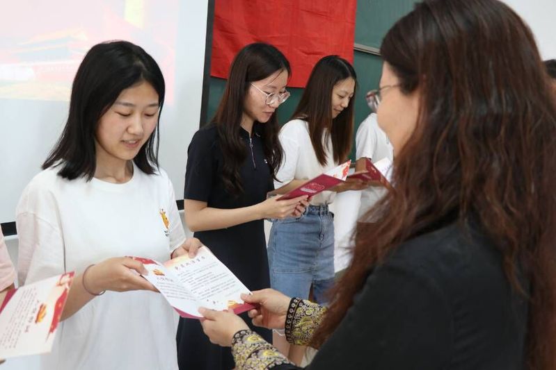 过“政治生日”是一项具有庄严感的政治仪式,各学生党支部组织毕业生党员互相赠送“政治生日卡片”并表达毕业祝福,刚刚转为正式党员的公费师范生李滢激动的说到:“这份沉甸甸的‘生日卡’我将永远珍藏,这是一份礼物,更是一份嘱托,它提醒着即将步入社会的我,要始终做理想信念坚定的笃行者,做勇立时代潮头的弄潮儿,走到教师岗位后,我要以学校老师们为榜样,立德树人,爱岗敬业,让青春在向上与拼搏中开花结果。”