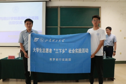 仪式上,徐藤为学院暑期社会实践团队代表授旗。