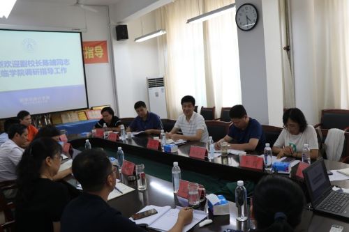 8月12日下午,副校长陈靖莅临我院调研指导工作,学院党委书记王玉冰,院长李功胜,党委副书记曹玉霞,副院长孙俊涛、王建锋,学院各系(部)、各科室负责人参加座谈会。
