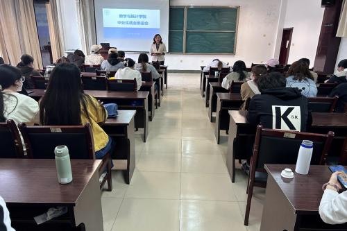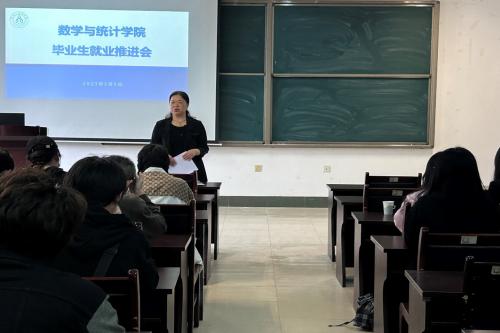 为进一步贯彻落实学校2023届毕业生春季促就业攻坚行动实施方案工作要求以及学院2023届毕业生就业工作方案,促进毕业生顺利就业、 尽早就业、高质量充分就业,学院于55日上午,在15号教学楼分专业召开了数学系、统计系和信科系毕业生就业推进会。党委书记郭奎霞、党委副书记曹玉霞、副院长徐夫义分别出席就业帮包专业班级的就业推进会。统计系主任刘霞、毕业班辅导员以及未确定就业去向的100余名同学参加了此次会议。