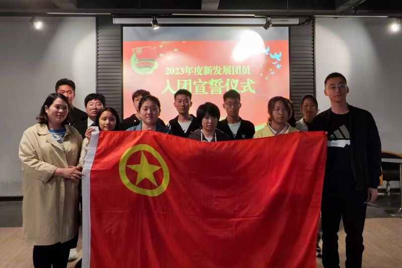 入团仪式在庄严的国歌声中拉开帷幕,首先由主持人张志菲宣读举行入团仪式的意义并宣布2023年度新发展团员名单,本次共有5名同学加入团组织;随后集体观看并学习了《我是共青团》《总书记心中的新时代好青年》等有关内容;紧接着由新发展团员代表曲泽超同学发言,他表达了加入共青团的激动心情,并表示将立志以良好的精神姿态、饱满的青春热情,争做新时代优秀团员;在团干部张晓颖同学的领誓下,新老团员面向团旗庄严宣誓,团委老师为新发展团员佩戴团徽。