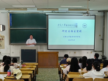 为使同学们更好地了解安徽大学数学科学学院研究生教育特色及教育理念、招生政策与相关要求,满足考生对研招咨询的需求,广纳我院优秀学子进入安徽大学深造。6月15日下午,安徽大学研究生招生宣讲会在15号楼103成功举办,学院2020级200余名学生参加了宣讲会,分管院长王建锋主持,安徽大学汪毅院长、施敏加教授进行宣讲。