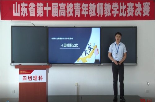 决赛中,李光老师借助“狼来了”的寓言故事为背景,以探寻村民对放羊小孩的可信度为例完成导课,通过激活旧知完成理论分析,给出贝叶斯公式,再回扣引例并进一步探寻该公式的工程应用,形成了发现问题、提出问题、分析问题、解决问题、利用新理论进行相关应用的闭环授课模式,课程思政润物无声,实现了知识传授和育人目的,赢得专家评委们一致好评。