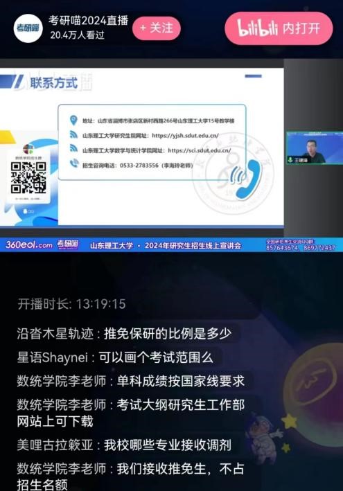 为方便给考生提供线上咨询服务,学院建立了2024年研究生招生咨询QQ交流群,研工办老师随时提供线上报考咨询答疑与指导。同时,王建锋还风趣地介绍了淄博烧烤和蒲松龄故居,欢迎同学们来淄博游学。