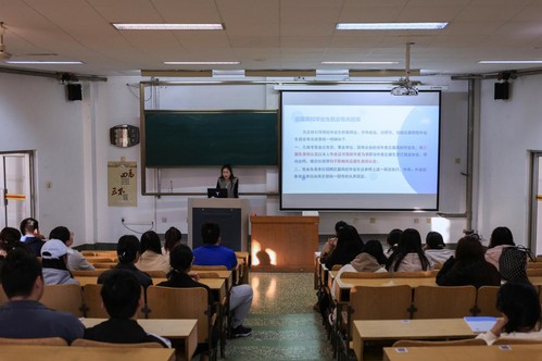 随后,曹玉霞对就业形势和面临的挑战进行分析。她表示,就业问题的解决对考研成功率的提升和毕业生未来的发展具有重要意义,考研与就业并不冲突,鼓励同学们积极签约就业,倡导毕业生树立正确的就业观、择业观,调整就业心态,把握就业机会,拓宽发展空间,实现毕业即就业。