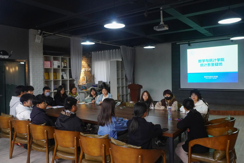 为更好地帮助同学们投入学习,解答学习中的疑惑,11月9日下午,数学与统计学院在15号教学楼数创空间举行统计学系答疑坊活动。统计学系主任刘霞应邀参加此次答疑活动,活动由学院学生办公室主任王超主持,统计学专业部分学生代表也参加了此次活动。