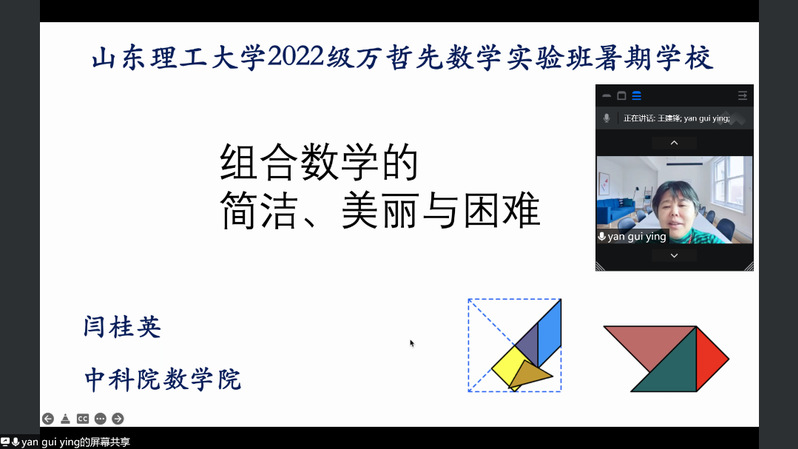 开班仪式结束后,大家一起聆听了中国科学院大学讲席教授、二级教授、中国科学院大学数学科学学院郭田德副院长的《人工智能与最优化》科普报告,中国科学院大学教授、中国科学院数学与系统科学研究院二级研究员、国家数学与交叉科学中心闫桂英副主任的《组合数学的简洁、美丽与困难》科普报告。