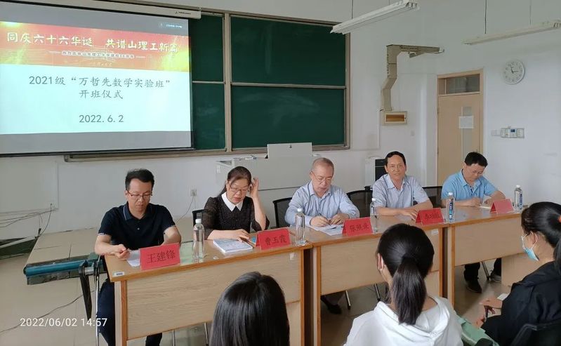 2022年6月2日下午,数学与统计学院2021级万哲先数学实验班开班仪式在15号楼505教室举行,副院长王建锋教授主持了本次开班仪式。我校教务处处长张照录教授、北京大学冯荣权教授(线上)、我院院长李功胜教授致辞,曹玉霞副书记、数学系主任孙文华、实验班班主任孙中锋和2021级实验班学生参加了本次仪式。