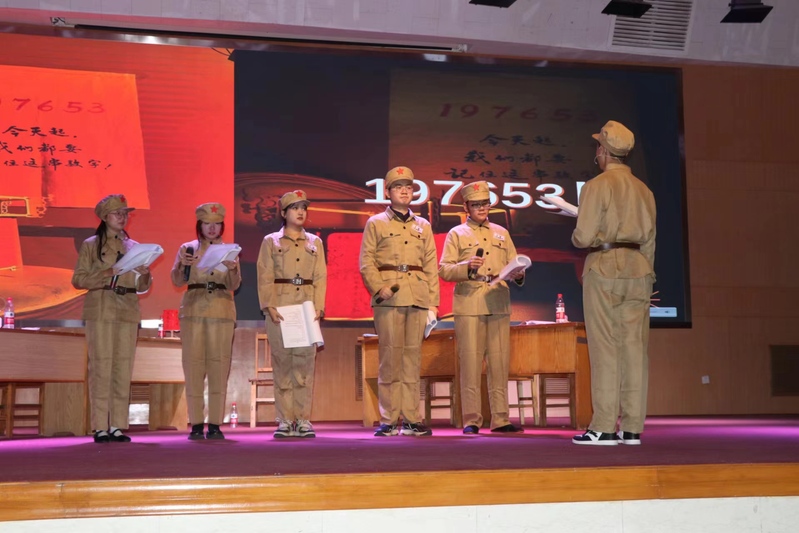 本次活动以同学们喜爱的剧本杀为载体,设置红色剧本阅读、模拟演绎等环节。活动过程中,同学们们全身心沉浸于战争年代,跨越时空与革命先烈对话,亲身体验他们保家卫国的英勇历史,切身感受红色背景下的生死离别。演员的生动演绎与后台工作人员相互配合,使活动进入高潮,表演者共唱了《中国人民志愿军战歌》。最后在全体同学的积极参与下,活动主题完成了由家庭层面到国家层面的升华。