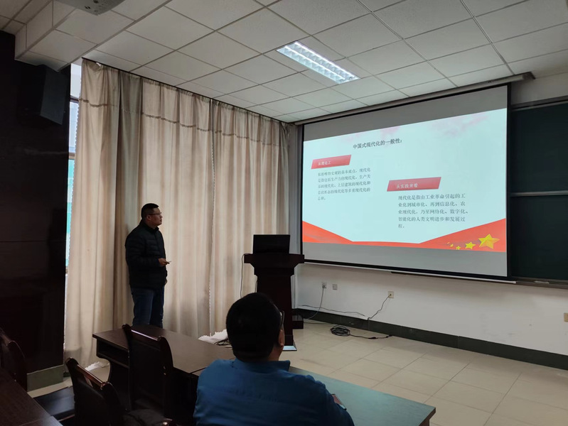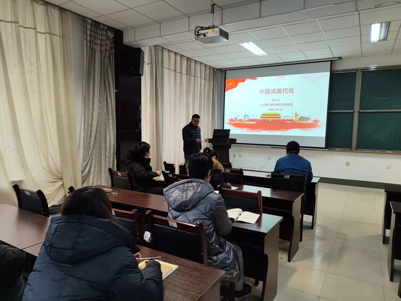 12月14日下午,在15号楼430会议室,副院长徐夫义为大学数学教学部党支部党员讲授题为《中国式现代化》的党课。