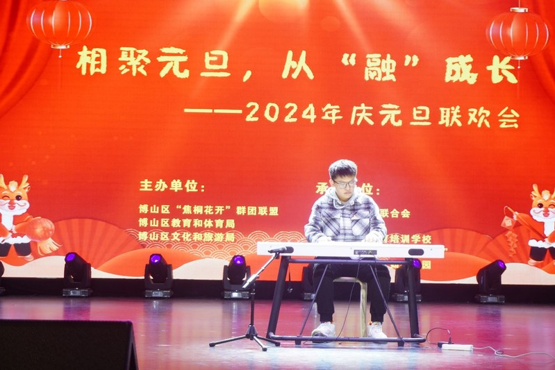 活动中,成员们不仅投身于志愿服务,还积极参与到元旦节目的表演中。胡宁馨、高恒欣、李凯锋、刘潇四名同学共同朗诵的诗歌《守护星星的孩子》,马宇辰同学的钢琴表演《致爱丽丝》,受到了台下领导、家长及同学们的一致好评。同时,成员们也观看了来自博山自闭症疗育培训学校中可爱孩子们带来的精彩节目。尽管在开始表演时孩子们略显拘谨,但看着他们在舞台上愈来愈佳的表现,成员们也备受感动。在表演接近尾声时,郭奎霞、刘曌阳及党支部成员们被邀请上台,与孩子、家长和老师们一同参与到表演中,活动气氛达到了高潮。