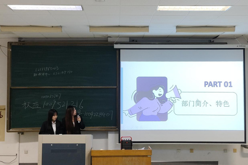 宣讲大会在有序的氛围中拉开帷幕,学生会秘书处代表率先进行宣讲,随后,其他七个部门代表依次登台亮相。各部门代表运用视频与PPT相结合的方式,以幽默而又不失严肃的语言,介绍了各部门的主要职能,生动展示了自己部门的团队氛围以及过去一年的工作成果。他们分享的经验与心得,让新生们对学生会的工作有了更为全面而深入的了解。