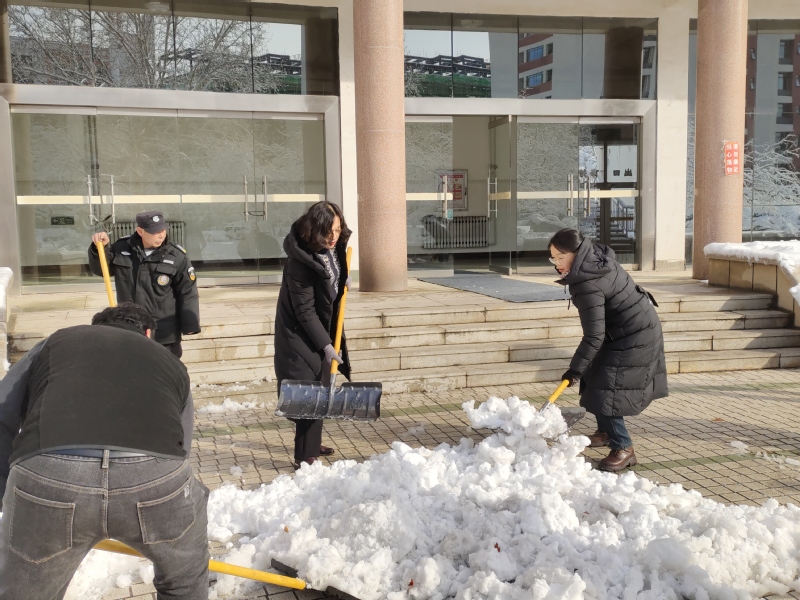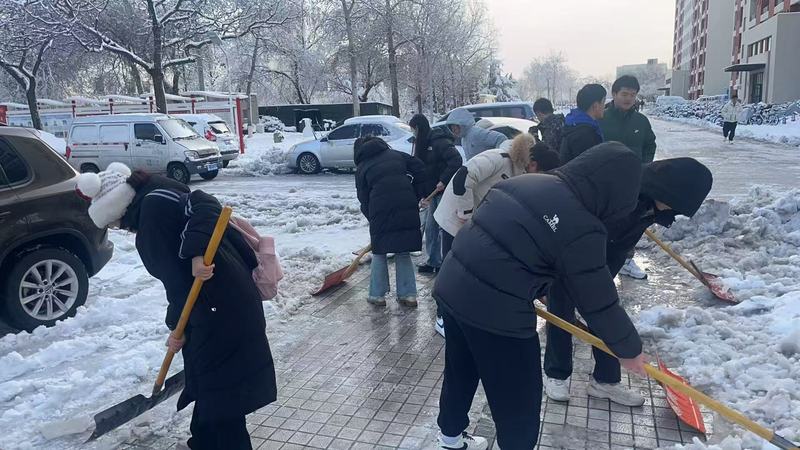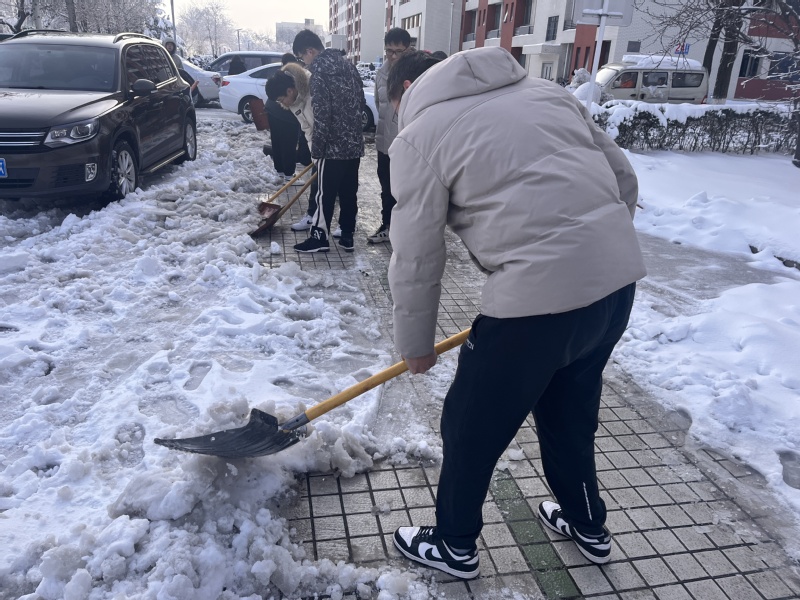 在凛冽寒风中,教师与学生分工合作,手持铁锹破开雪层,扬起雪铲清理积雪,以劳动的热情驱散了冬日的严寒。教师们以身示范,将扫雪现场转化为生动的劳动教育课堂;学生党员和学生骨干们干劲十足,或三五协作搬运积雪,或细致清扫台阶残冰,青春的朝气与团结的力量在一次次挥洒汗水的行动中彰显。数小时后,将教学楼前及周边道路积雪清扫完毕,主要通道恢复通畅。