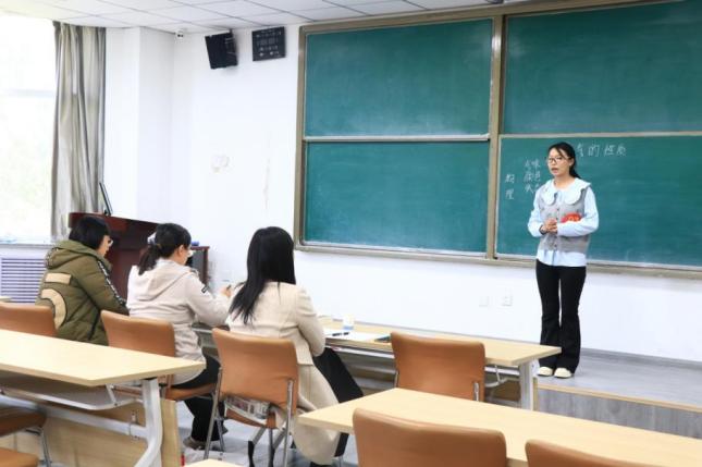 本届师范生技能大赛校级比赛参照山东省师范类高校学生技能从业大赛比赛规则,决赛阶段共分为模拟课堂教学和抽题答辩两个环节。模拟课堂环节中,参赛选手拥有一个半小时备赛时间,他们争分夺秒投入备课,既要深入钻研课文、熟悉内容,又要凭借专业知识和创新思维完成模拟课堂教学设计,充分展现了师范生扎实的教学素养与创新能力。在随后的答辩阶段中,评委老师从授课内容、教学方法、板书设计等多方面进行提问,既考验了选手们的现场应对能力,也考察了选手们的教育理论素养和教学实践经验。