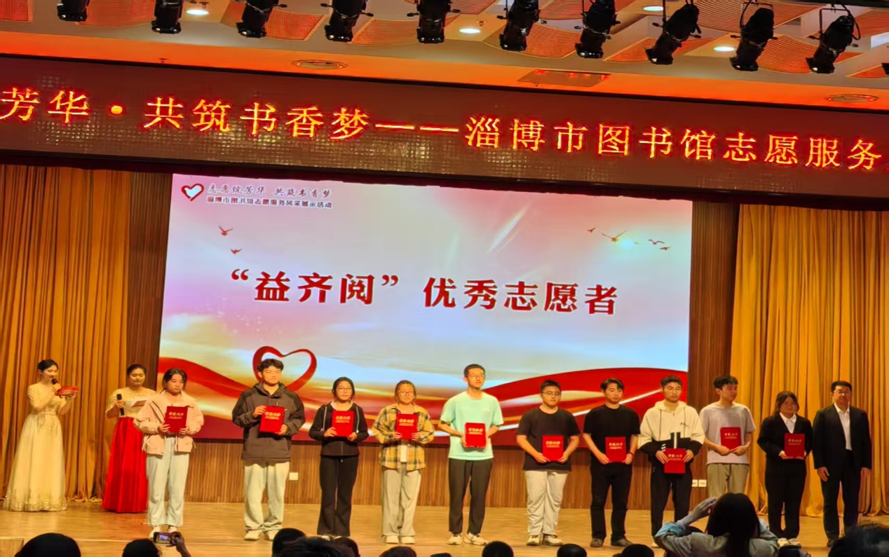 微光成炬。4月26日下午,为发扬“奉献、友爱、互助、进步”的青年志愿者精神,淄博市图书馆2024年度表彰大会在市图书馆报告厅成功举办。我院可迁移能力训练营书香青春志愿服务队荣获“优秀志愿团队”称号,朱星茹同学荣获“优秀组织者”称号,于雅楠等10名志愿者荣获“优秀志愿者”称号。