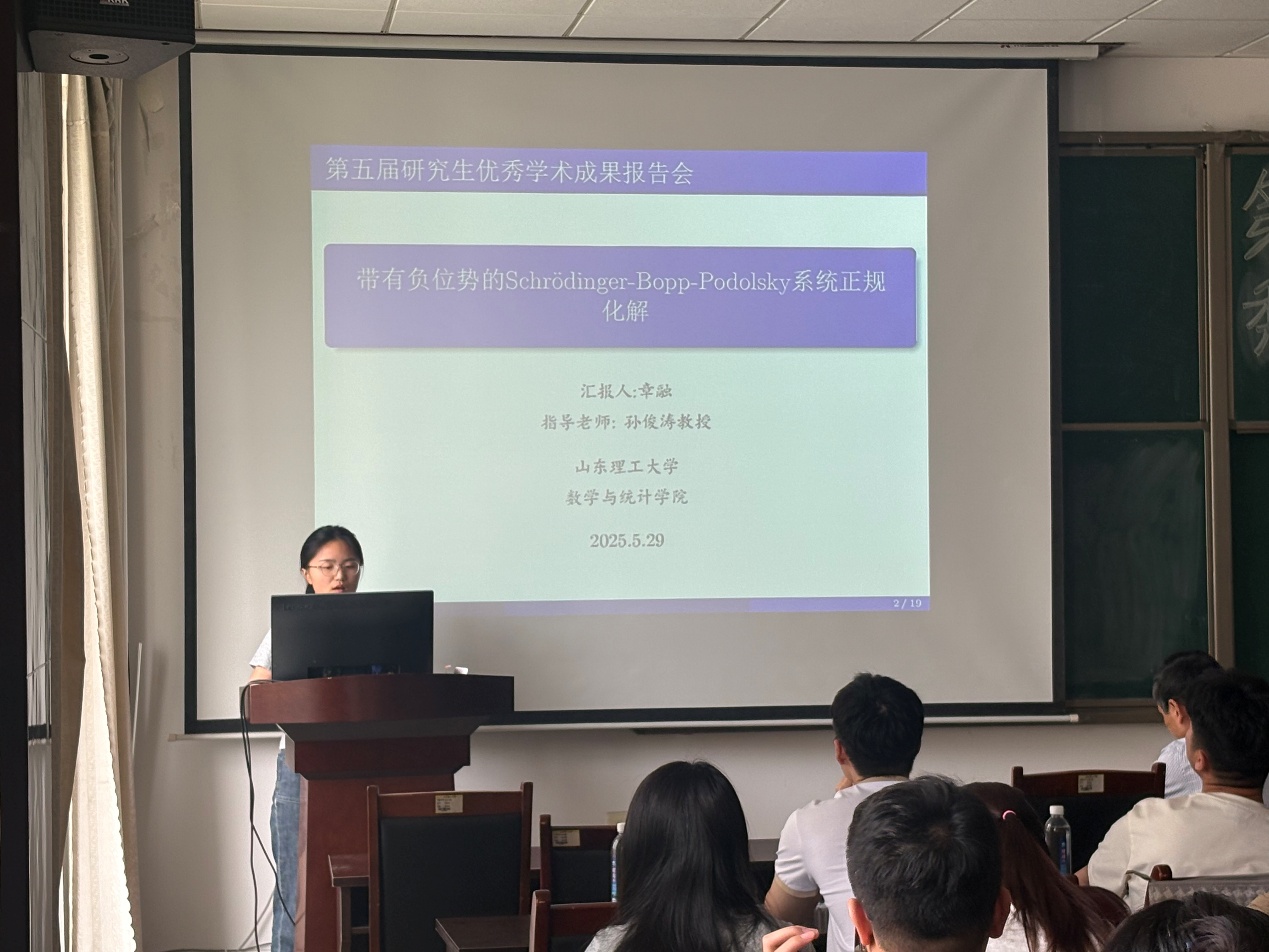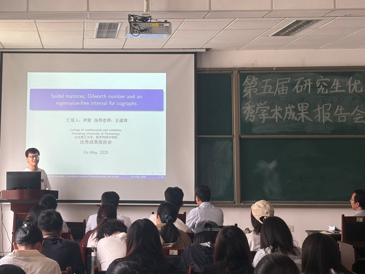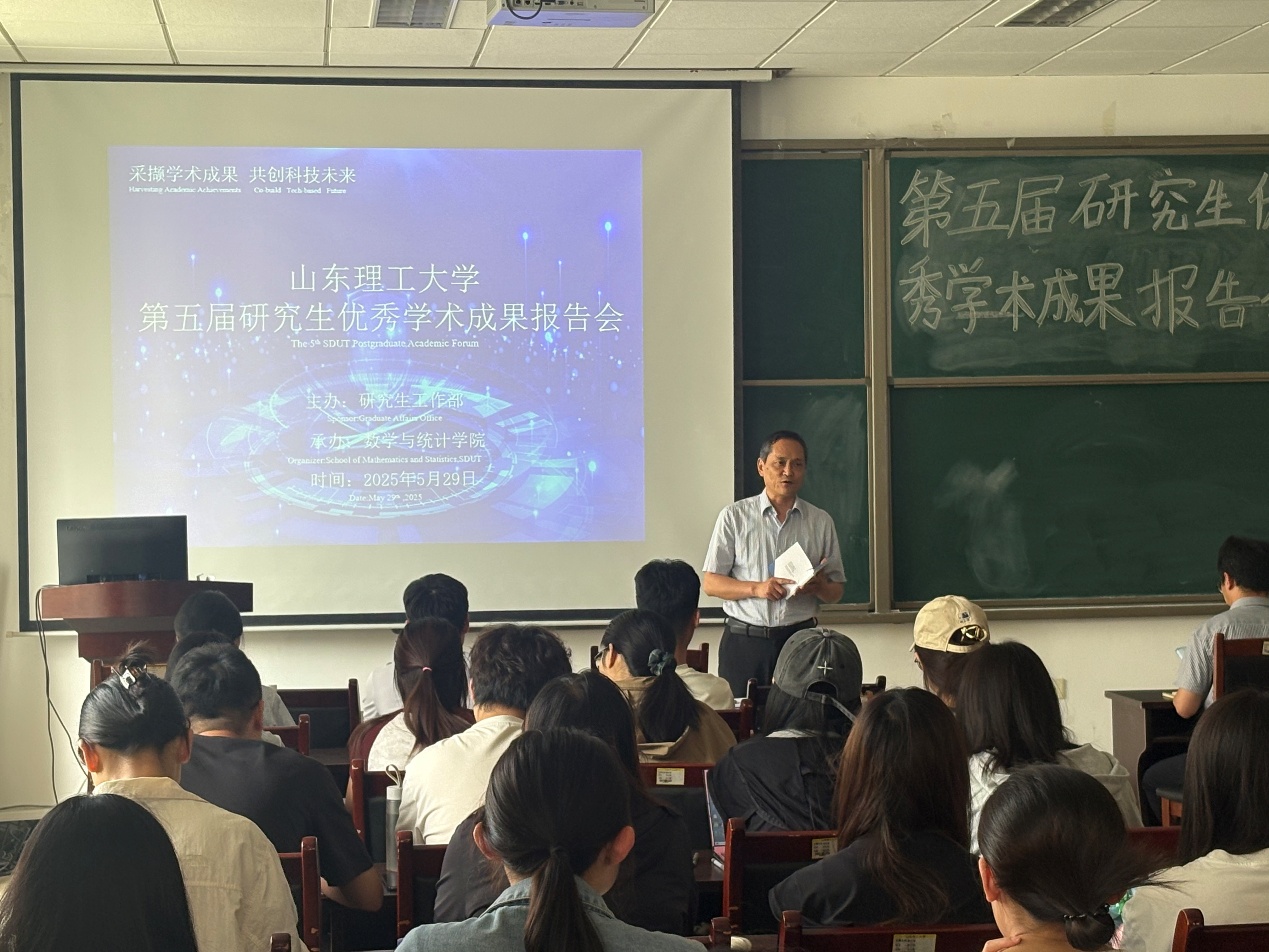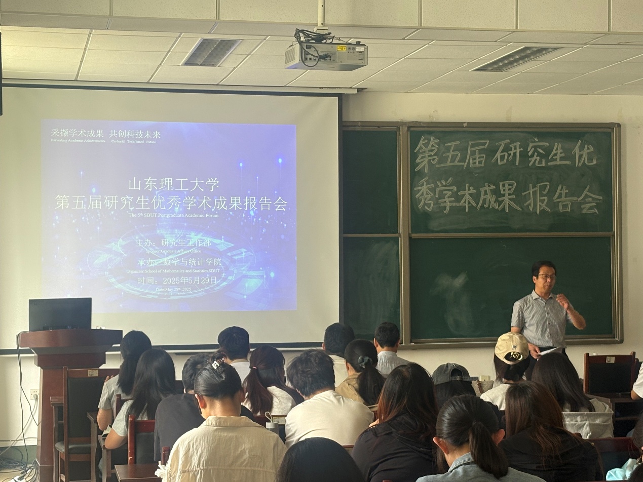5月29日下午,由研究生工作部主办、数学与统计学院承办的山东理工大学第五届研究生优秀学术成果报告会在15号教学楼430教室举行。数学与统计学院教授李功胜、学院副院长王建锋、研究生辅导员谢季阳出席会议,数学与统计学院全体研究生参加会议,报告会由李功胜主持。