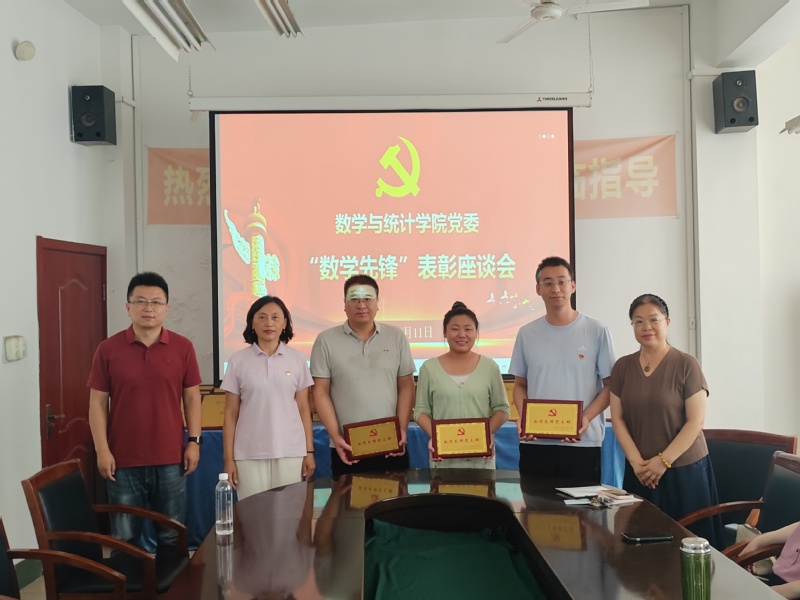 为充分发挥基层党组织战斗堡垒作用和党员先锋模范作用,营造崇尚先进、争当先锋的良好氛围,7月11日上午,数学与统计学院在15号教学楼414会议室举行“数学先锋”表彰座谈会。学院领导班子、各党支部书记、受表彰师生党员代表参加,会议由学院党委书记郭奎霞主持。