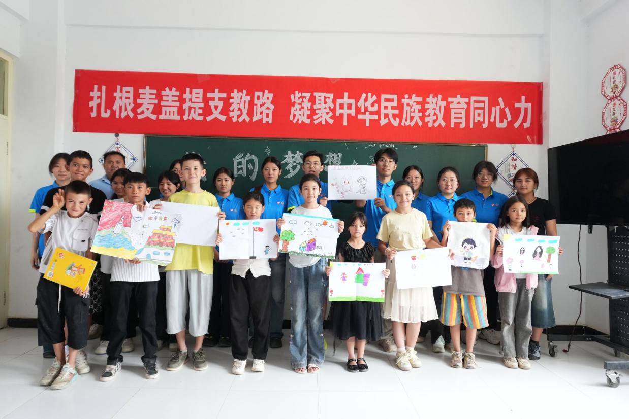“红领巾小课堂”作为覆盖城乡的教育实践平台,以铸牢中华民族共同体意识为主线,让教育兼具深度与温度。此次活动通过梦想分享、绘画创作与学业辅导相结合的形式,为当地少数民族学生提供了展示自我、提升能力的机会,不仅丰富了孩子们的暑期生活,更在互动交流中厚植了爱国情怀,增进了民族情谊。今后,鲁喀石榴籽实践团将持续以实际行动践行使命,用爱心与责任助力孩子们成长成才,为铸牢中华民族共同体意识贡献青春力量。