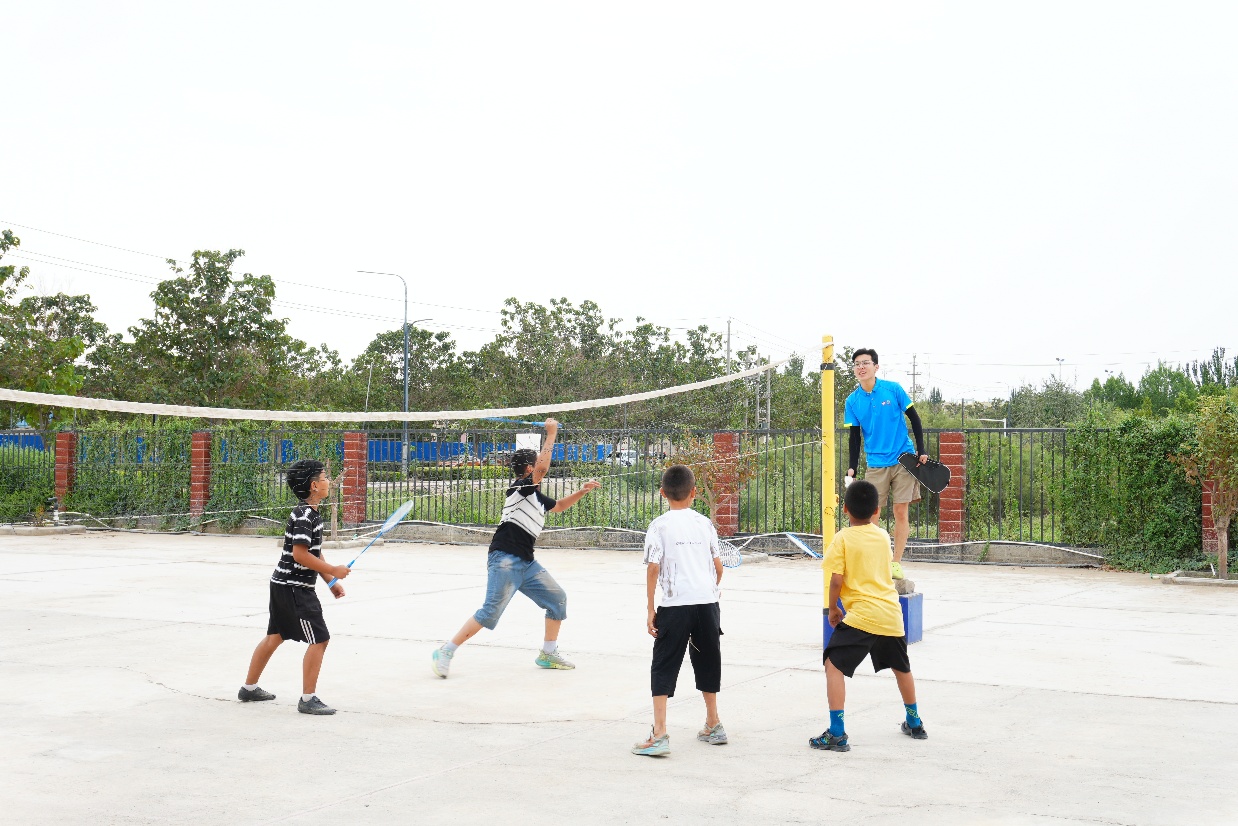 此外,实践团坚持贯彻“德智体美劳”全面发展理念,为激发孩子们的运动积极性,提升级孩子们的运动能力,在学习之余组织了羽毛球、排球等体育活动,将阳光体育课程带进“红领巾小课堂”,在喀什土地上播撒欢笑与运动的种子,让孩子们在运动中健康成长。