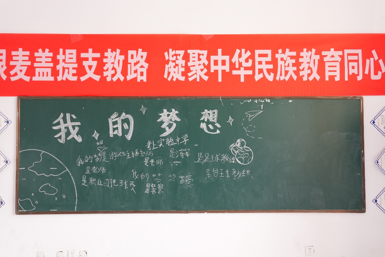 活动中,实践团成员鼓励孩子们在黑板上写下自己的梦想并分享想法。孩子们积极举手,踊跃发言,用稚嫩的声音描绘向往的模样,一份份纯真质朴的梦想里藏着孩子们对未来的美好期盼。“我的梦想是成为一名海军。”维吾尔族巴郎子阿卜都热合曼这样说,“因为海军可以保护我们的家园,可以打败坏人,击退敌人。”强军梦从现在开始准备。