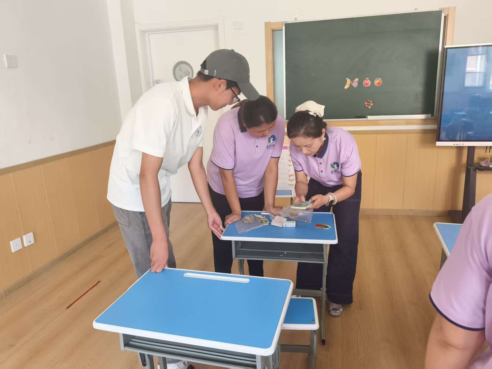 活动筹备阶段,实践团成员与学校老师齐心协力、精心策划。为了让孩子们能更好地理解超市购物流程,成员们进行了生动的角色扮演,模拟出逼真的超市购物场景。其中一位成员化身为热情亲切的“超市老板”,用温和耐心的语气和极具亲和力的态度,一步一步引导孩子们学习商品挑选、货币支付等关键流程。在轻松愉悦的氛围中,孩子们在不知不觉间开始掌握这些重要的生活技能。与此同时,其他成员与老师们密切协作,为每一位孩子分发代币,鼓励他们勇敢地迈出独立完成购买任务的第一步。实践团负责人表示:“我们希望通过这样的实践活动,让孩子们真切地感受到社会的包容与支持,为他们融入社会增添信心。”