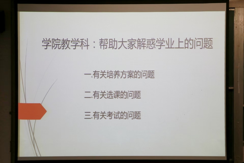 随后,教学科张艳平针对大学学习常见问题展开指导。张艳平以往届毕业生成绩单为实例,解读毕业资格和学位资格;指导新生通过学院官网查询2025版培养方案明确课程学分要求,强调选修课不足20人不开课、选课签字确认后不可随意更改,讲解课程替代、成绩删除、缓考的申请流程,同时提醒新生关注学委通知,及时获取四六级、计算机等级考试等信息并提前准备相关材料。