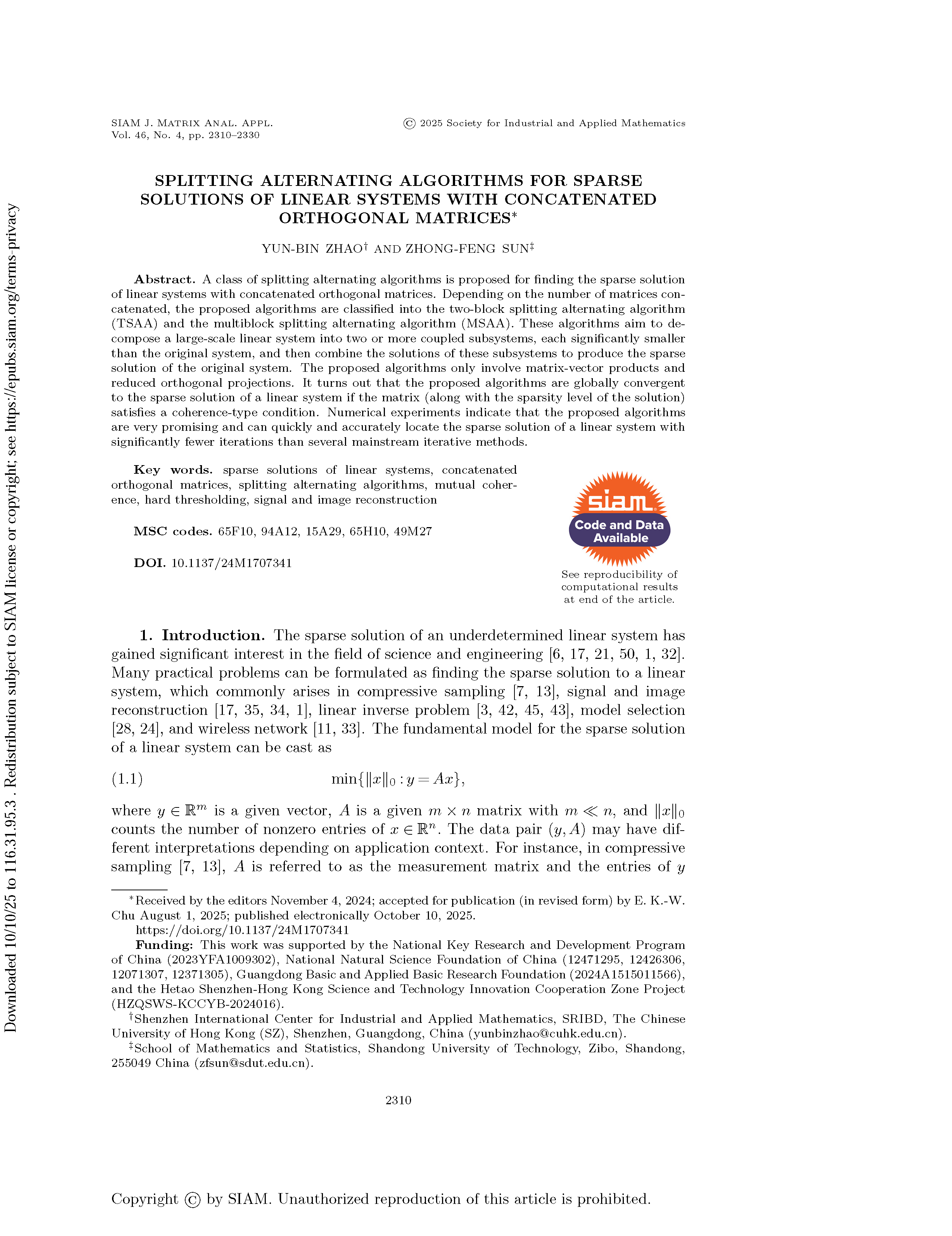 我院运筹学与控制论团队在稀疏线性反问题研究方面取得新进展