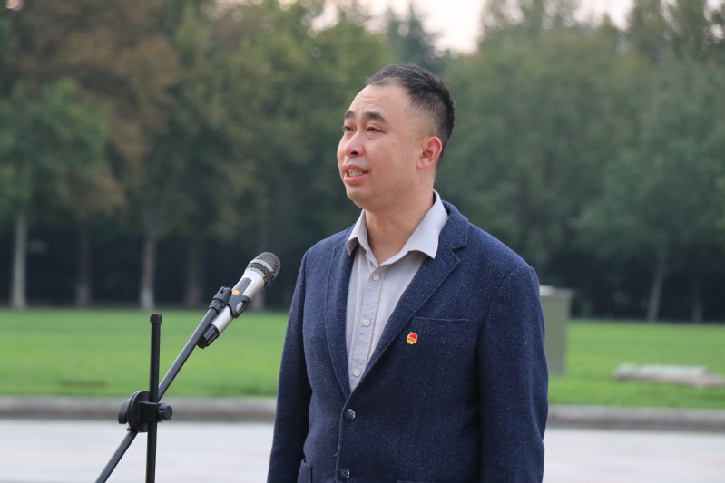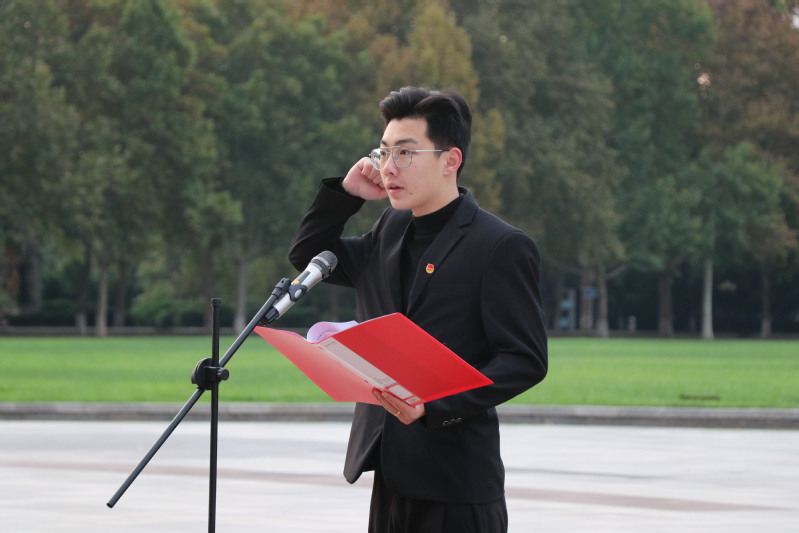 随后,王晓冬在升旗仪式上讲话。他缅怀杨振宁先生历经阻隔仍报效祖国的赤子之心,回顾抗美援朝战争中志愿军的英勇牺牲和黄继光烈士的壮烈事迹,强调今天的和平来之不易。最后,他引用李大钊名言“以青春之我,建设青春之民族”,勉励同学们铭记历史,肩负起新时代青年的使命。