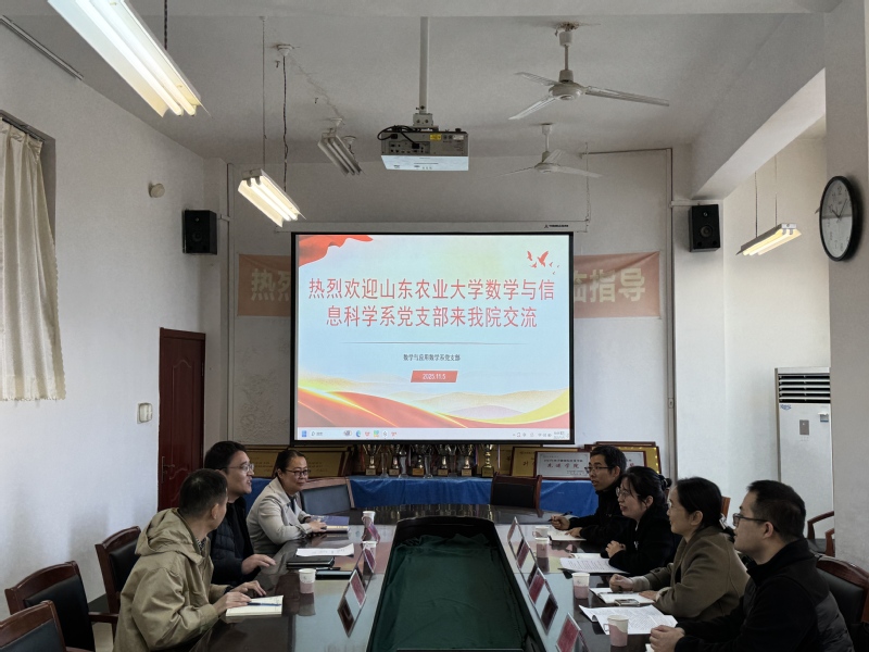 为深入推进新时代高校基层党组织建设,提升样板党支部创建质量,近日,山东农业大学数学系党支部一行4人在党支部书记于瑞林副教授带领下来访我校数学与统计学院,与数学与应用数学系党支部开展申报工作经验交流。党支部书记高健副教授、副书记计省进副教授和张艳平副教授参加座谈。