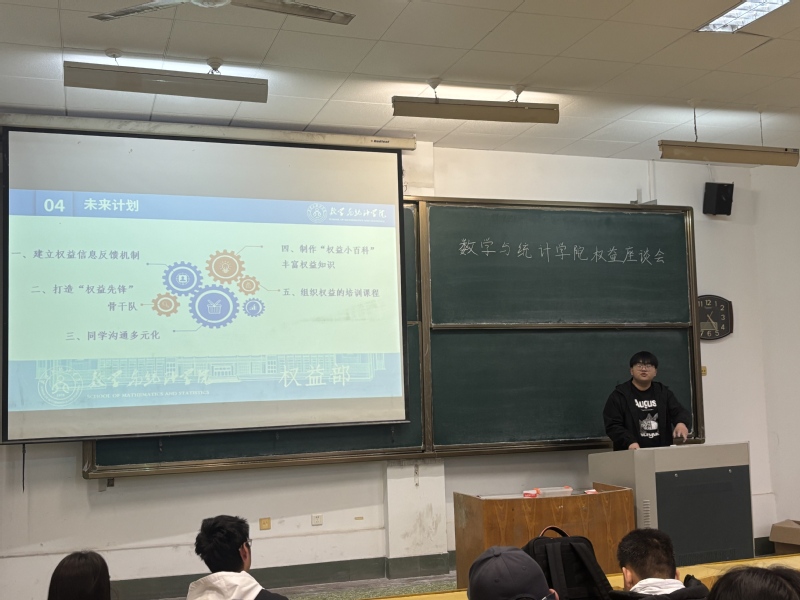 为深入贯彻以学生为中心的工作理念,精准回应学生在学习生活中的权益关切,筑牢学生权益保障屏障,12月11日下午,数学与统计学院学生会权益部在15号教学楼206教室成功举办权益座谈会。本次会议由学院权益部负责人任志泽主持,2023级、2024级、2025级全体生活委员、权益联络员及校学生会权益部工作人员参会,齐聚一堂共商学生权益保障工作。