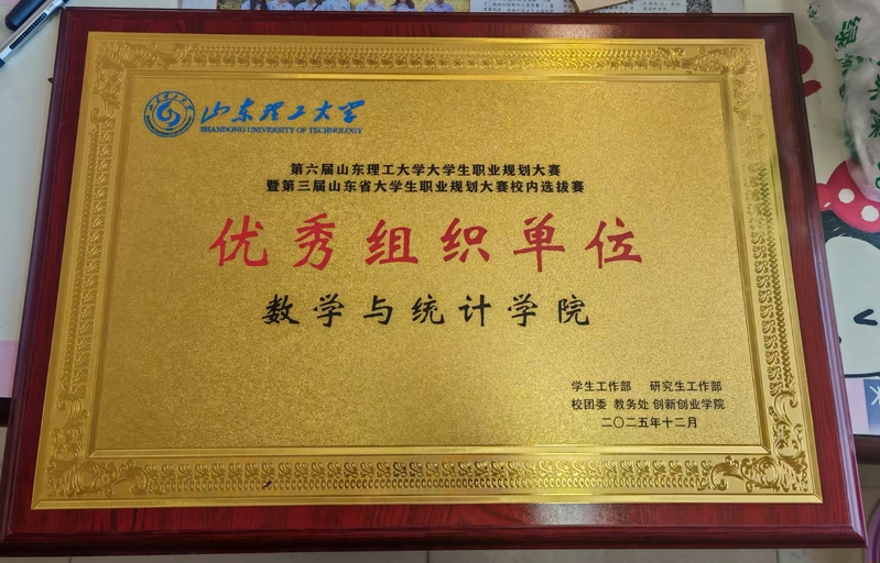 近日,第六届山东理工大学大学生职业规划大赛暨第三届山东省大学生职业规划大赛校内选拔赛圆满落幕。数学与统计学院在此次赛事中组织有力,不仅助力多名学生斩获奖项,更凭借出色的组织工作荣获“优秀组织单位”,充分展现了学院在深化就业育人、服务学生全面成长方面的扎实成效。