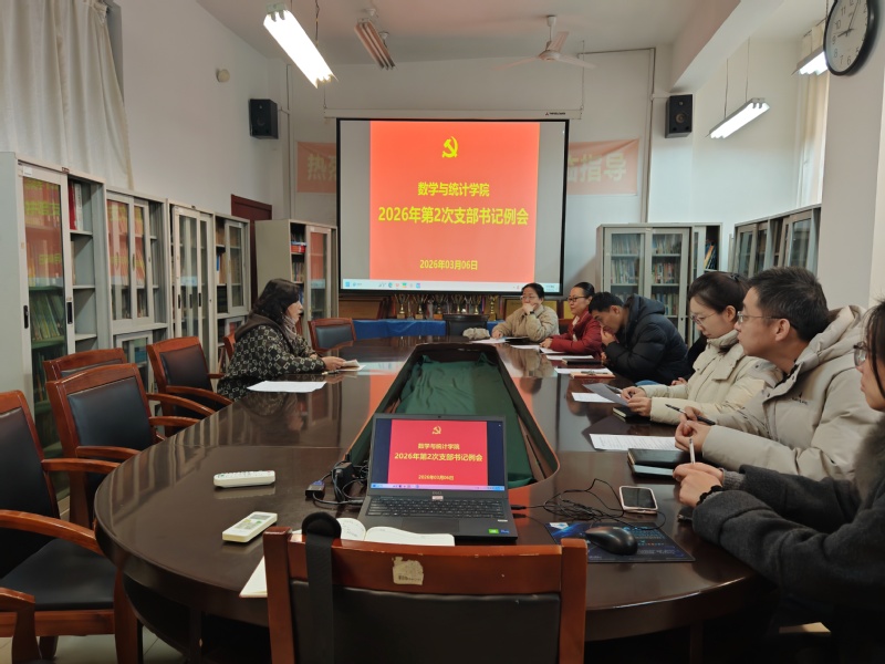 3月6日9:00,数学与统计学院党委在15教414会议室召开2026年度第2次党支部书记例会。会议由学院党委书记郭奎霞主持,全体教工党支部与学生党支部书记参加。