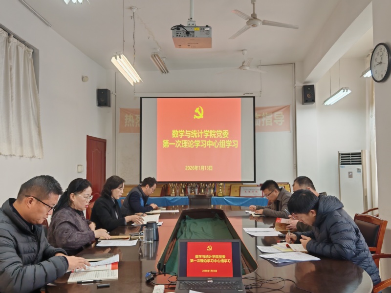 2026年1月13日上午,数学与统计学院党委在15号教学楼414会议室组织召开2026年度第1次理论学习中心组学习会议。会议由学院党委书记郭奎霞主持,理论学习中心组成员参加。