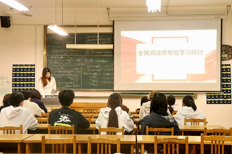 活动伊始,全体同学共同观看了全民阅读专题学习视频,系统学习了习近平总书记关于全民阅读的重要论述。习近平总书记指出,阅读是人类获取知识、启智增慧、培养道德的重要途径,可以让人得到思想启发,树立崇高理想,涵养浩然之气。随后,与会师生围绕“如何在校园中推动全民阅读”“如何让阅读真正融入日常”“如何发挥高校师生的示范引领作用”等主题展开深入交流研讨。大家一致认为,阅读不应是阶段性任务,而应成为内化于心的生活方式。作为数学专业学生,既要读数学经典,夯实专业根基,也要广泛涉猎人文社科书籍,在理性思维与人文素养的交融中实现全面发展。
